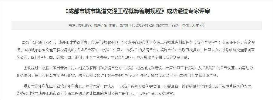 《成都市城市轨道交通工程概算编制规程》成功通过专家评审