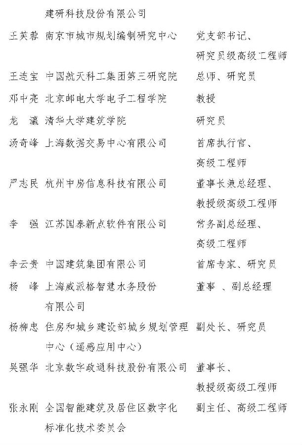 附件:住房和城乡建设部科学技术委员会智慧城市专业委员会组成人员名单