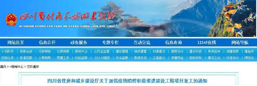 四川省住房和城乡建设厅关于加强疫情防控积极推进建设工程项目复工的通知
