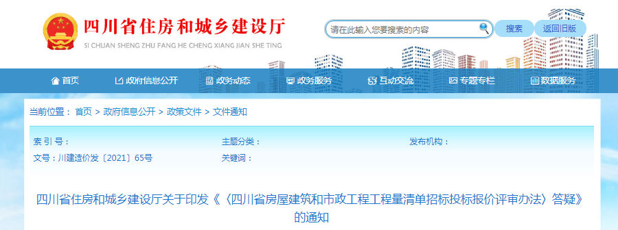 为切实做好全省房屋建筑和市政工程工程量清单招标投标报价评审工作,我厅会同省发展改革委联合印发了《四川省房屋建筑和市政工程工程量清单招标投标报价评审办法》(川建行规〔2021〕3号),现就操作层面的细节问题进行答疑,请遵照执行。
