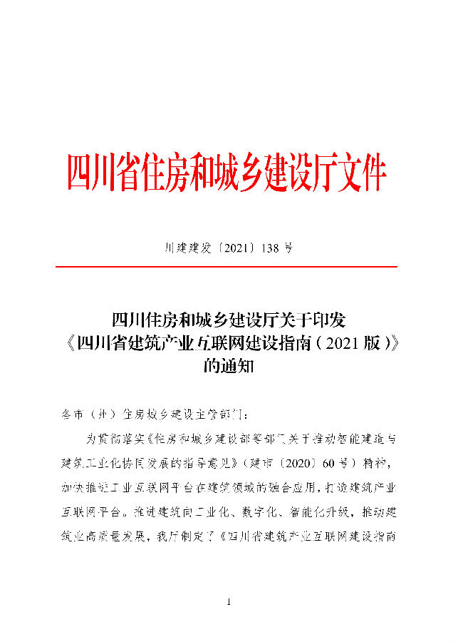 四川省住房和城乡建设厅关于印发《四川省建筑产业互联网建设指南(2021版)》的通知
