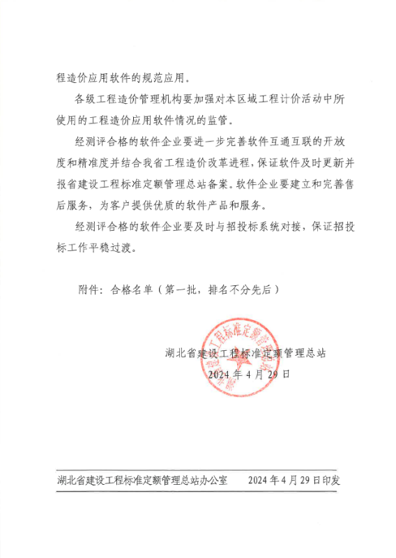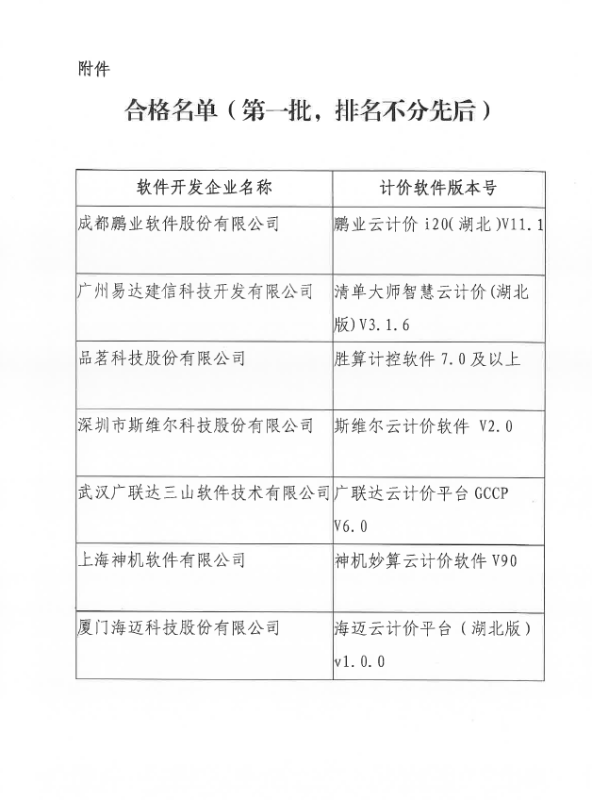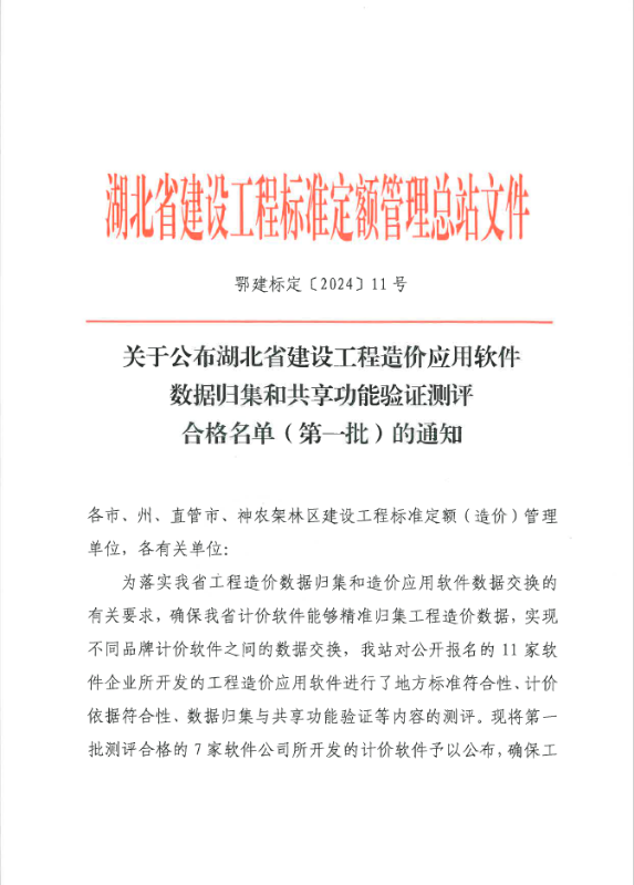 关于公布湖北省建设工程造价应用软件数据归集和共享功能验证测评合格名单(第一批)的通知