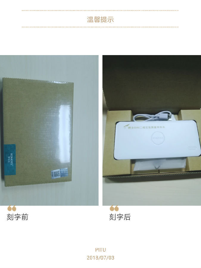 温馨提示:礼品统一从京东商城采购,因需要在充电宝上面刻鹏业周年庆字样,故您收到的礼品有拆开的迹象,敬请谅解!