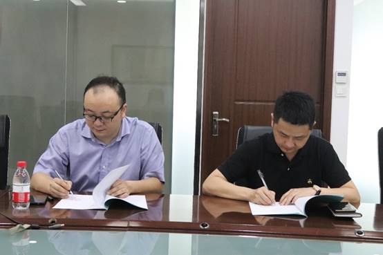 (左为君和公司董事长廖祺先生、右为鹏业公司副总裁陈锐先生)