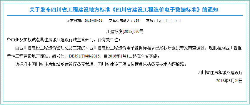一、《四川省建设工程造价电子数据标准》(DBJ51/T048-2015)