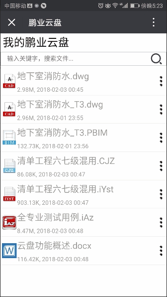 目前移动端可以直接预览四川省建设工程造价数据标准文件(.CJZ)以及鹏业BIM模型文件的工程量数据(.PBIM)