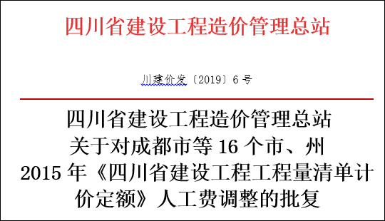 2019年7月1日起针对2015定额、2009定额人工调整执行川建价发〔2019〕6号、川建价发〔2019〕5号文件: