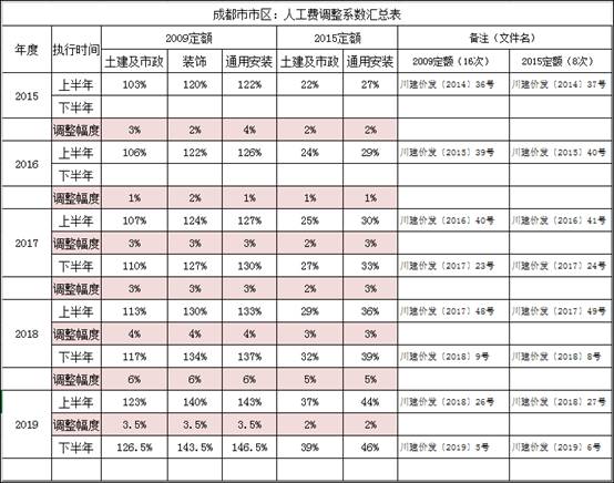另:针对四川2015计价定额,成都已执行8次人工综调,如下图: