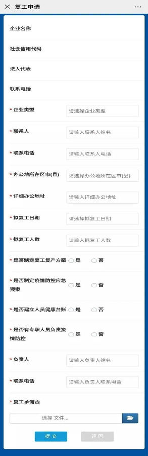 1、复工复产申报系统