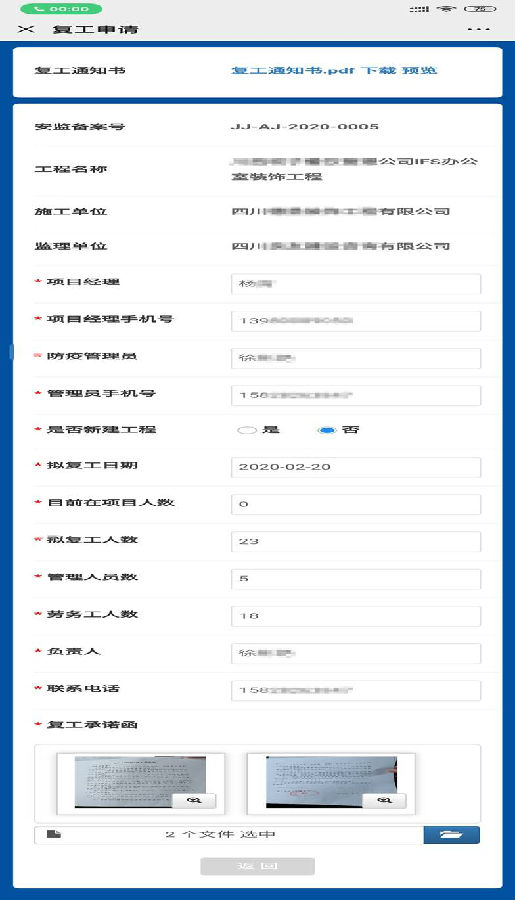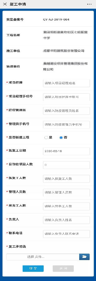 鹏业软件基于智慧工地平台、与市住建局密切配合,抽调平台精兵强将,加班加点为市住建局成功研发出住建领域复工复产申请系统,已于2月13日开始网上试运行,目前该系统已全面上线。