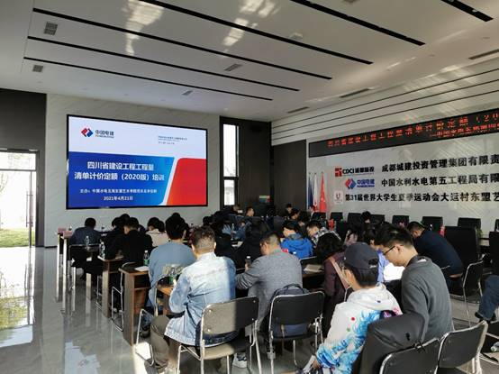 2021年4月22日,由中国水电五局东盟艺术学院项目总承包部主办,成都众和人力资源职业技能培训中心、成都鹏业软件股份有限公司联合协办的“四川省建设工程工程量清单计价定额(2020版)”培训专场在第31届世界大学生夏季运动会大运村东盟艺术学院项目部成功举办!项目部业主、过控单位等相关企业40多人参加了本场培训。