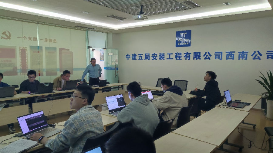 4月4日,鹏业软件为中建五局安装工程有限公司西南公司计量中心开展上门培训服务,本次培训内容以促进计量中心工作人员更好地上手、掌握安装算量软件操作为讲解核心。