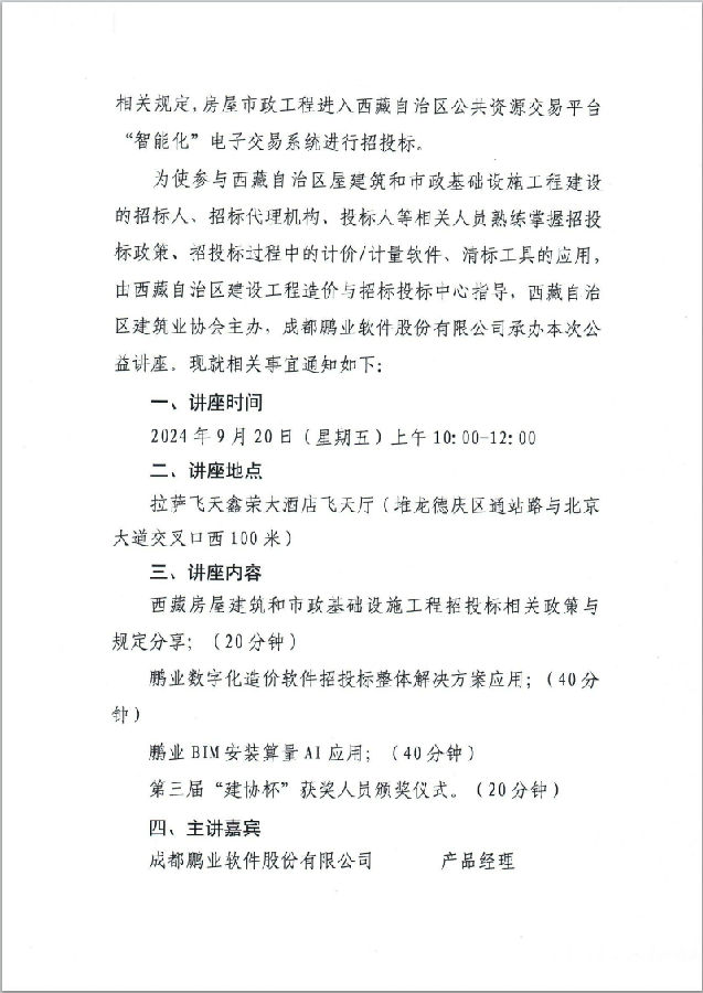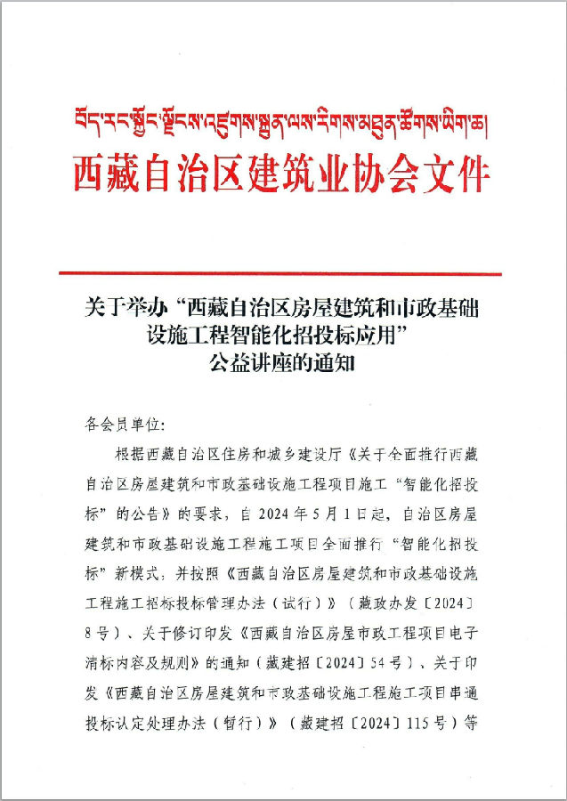 关于举办“西藏自治区房屋建筑和市政基础设施工程智能化招投标应用’公益讲座的通知