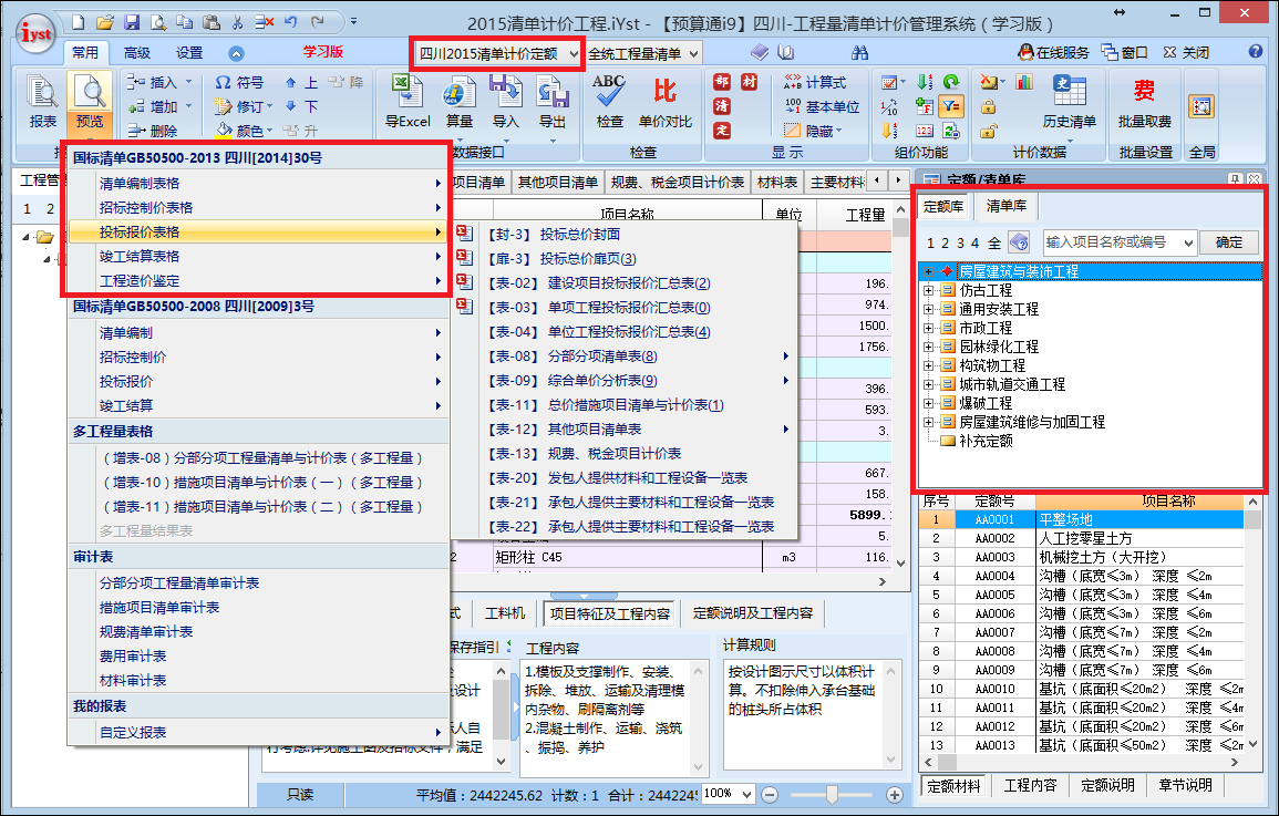 2.新增川建价发[2014]30号 《工程量清单计价表》(即2015配套报表文件)