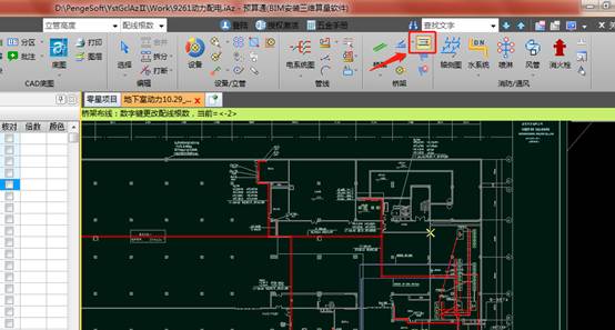 2. 按照提示,单击相应的低压柜为起点,在单击相应的配电箱作为终点,系统自动识别回路如图1,计算配线长度,自动判断桥架外配管长度。如下图2: