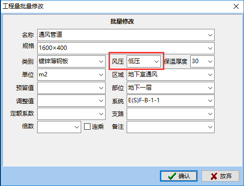 3,优化风管风压设置,批量修改工程量中新增风压设置