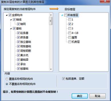 在选择需要复制的楼层来源和指定需要复制的构件。