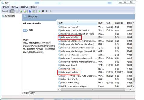 点击确定打开“服务”,查看Windows Installer和Windows Update有没有启动,如图1-1-3所示。