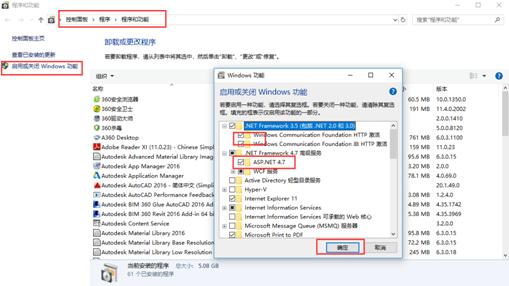 若没有启动,则先启动这两个服务,然后打开控制面板-程序-程序和功能-启动或关闭Windows功能,如图1-1-4所示的来勾选相关内容,点击确定。点击安装包安装软件,即可安装成功。