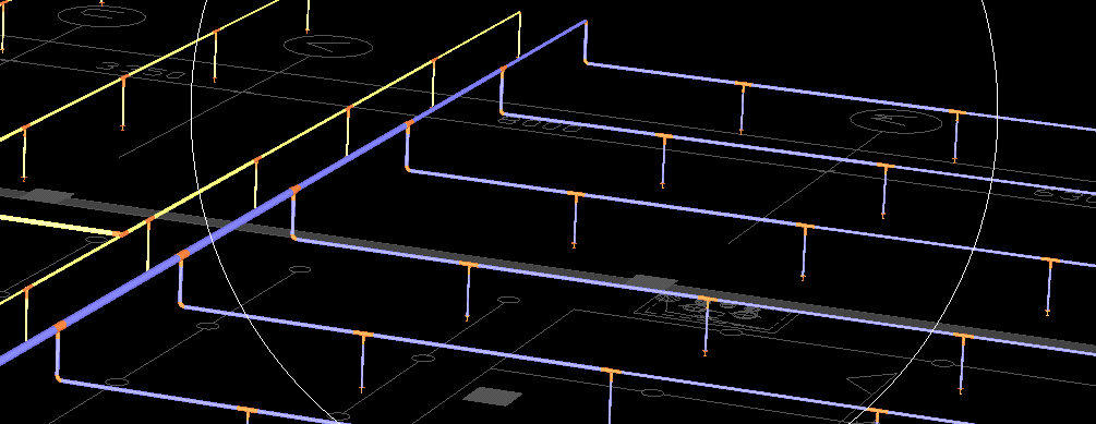 大片区域的管道存在管道的升降标高,通过调整水平管的标高实现,操作步骤如下: