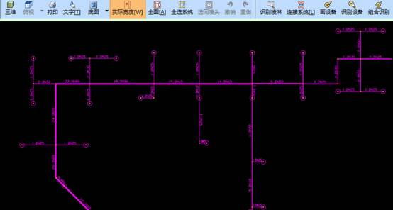 在喷淋模型中新增“实际宽度”按钮,点击实际宽度按钮,喷淋管道随管径大小显示;