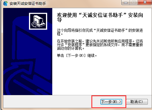 初次使用,请正确安装CA数字证书驱动。