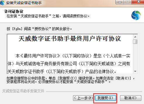 (3)阅读许可证协议,点击“我接受”。