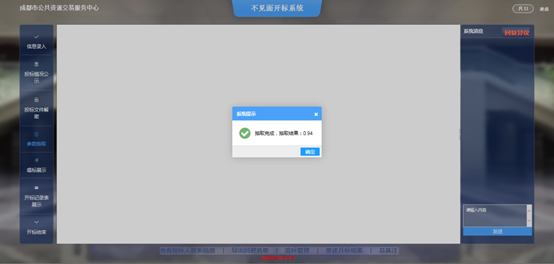 点击【开始解密】按钮,投标人进入解密环节,投标人须在规定时间内完成解密。