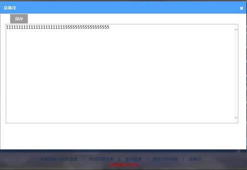 点击【总备注】,输入备注,点击【保存】,总备注内容保存在开标记录表中。