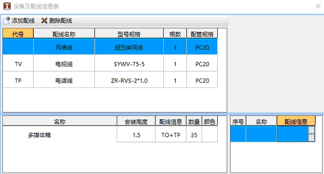 根据当前已有计算项目的图形建立综合布线模型,在模型中设置设备信息和配管配线,软件智能设置管线的配管配线信息
