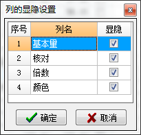 工程量表中列的显示可设置其显示或隐藏