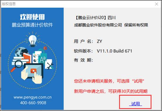 2、如未注册,请按照鹏业云计价i20(四川)软件激活流程操作。