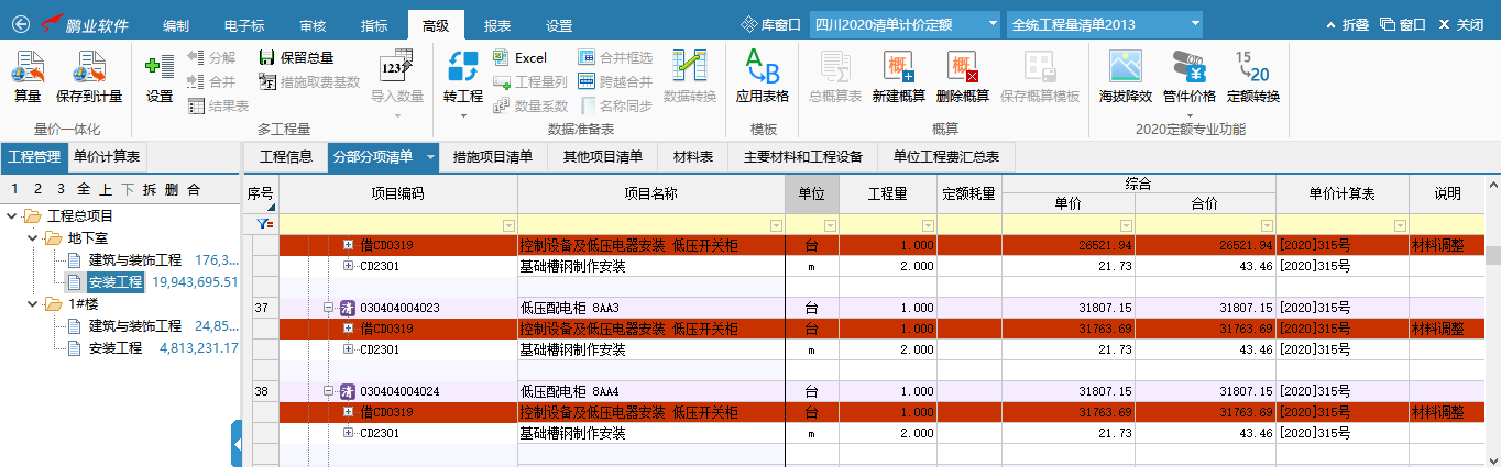 1. 用鹏业云计价i20软件打开2015定额的工程(注意:2015定额工程需要提前备份)。