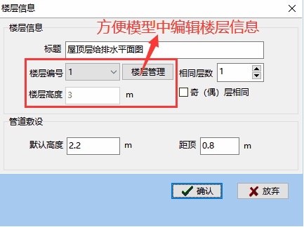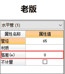 管道属性“高差”调整为 “安装高度”,减少用户在设置管道高度时的换算过程,安装高度支持默认高度、层顶等输入方式
