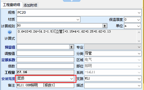 计算明细增加安装高度,对应的计算图元默认取计算项安装高度