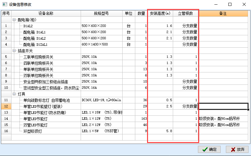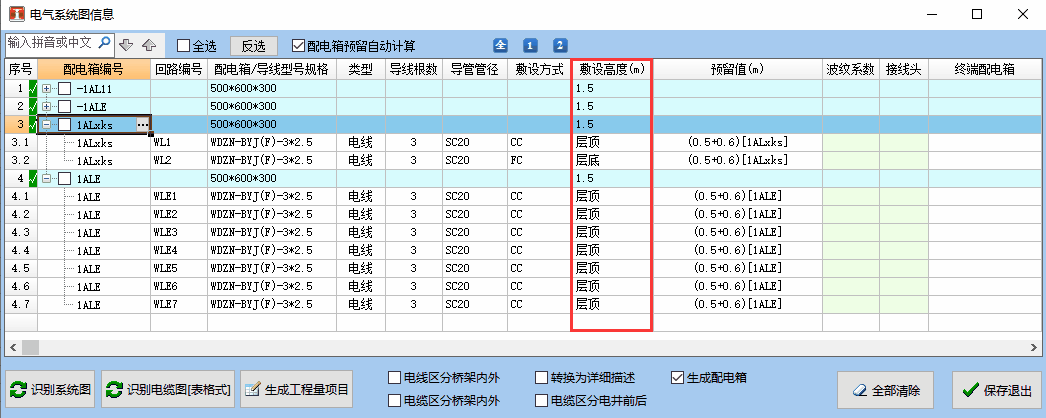 电气专业中,设备与水平线有安装高度的情况下竖向量自动生成,且对设备高度修改、回路高度修改、楼层高度修改均会自动重新计算对应的竖向量